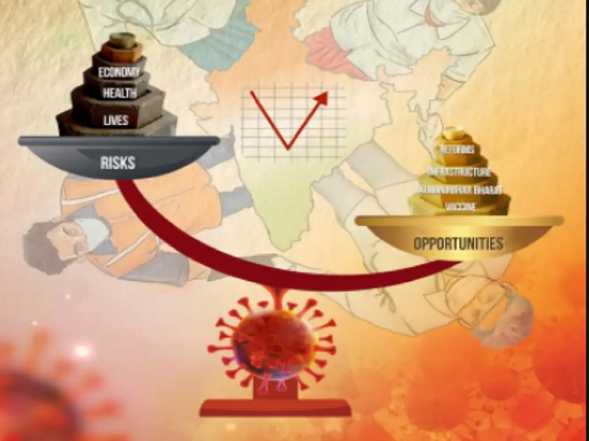 Cover of Economic Survey 2020-21 hosts a weighing scale with opportunities outweighing risks